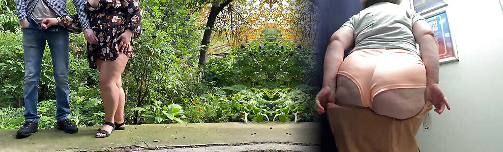 Elderly granny and nubile fellows Threeway outdoors