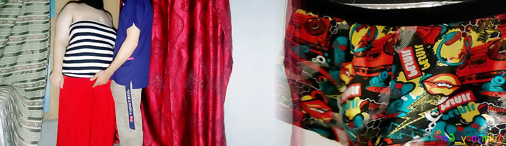 Gay Masturbation in New pantyhose and spandex Mini Skirt - Horny Crossdresser CD fun