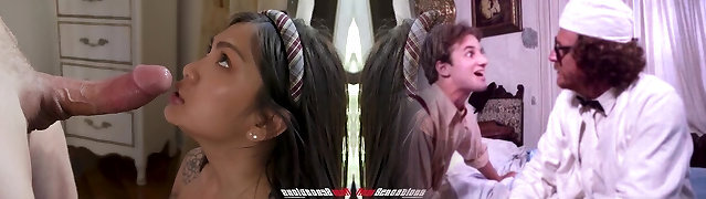 Massive cock deepthroat and lovemaking for a short Asian college female