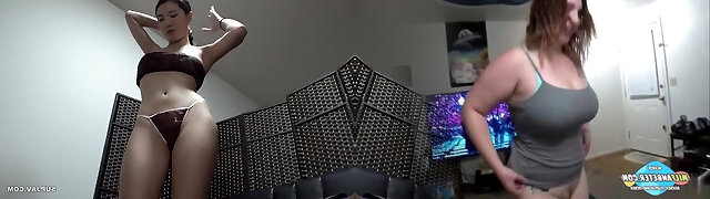 May Thai and Rebecca Sharon got packed up balls deep, while having a three-way, in the gym