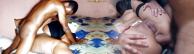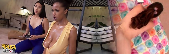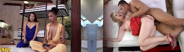 Ebony gamer girl lured by an asian lesbo into a threesomewith her boyfriend