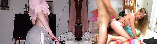 He pounds his stepsister in muffle so no one notices, she strips naked to pummel her pink vagina