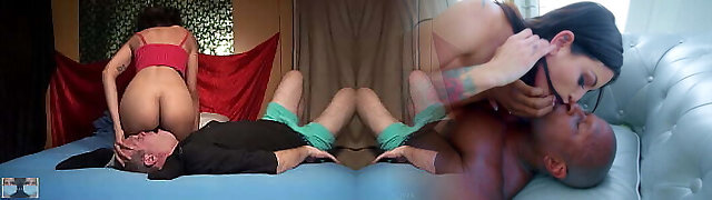 Ass worship facesitting femdoms in upskirt closeup ass opening up action