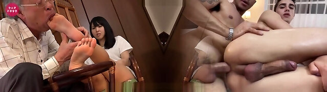 Mature asian foot worship and handjob Trio