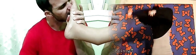 He luvs to lick, kiss and odor my feet and he can't stop cumming on them