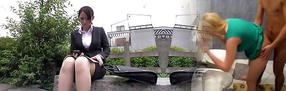 JAPANESE HORNY BABE GAGS ON TWO Phat COCKS CREAMPIE