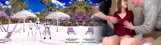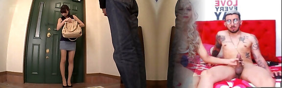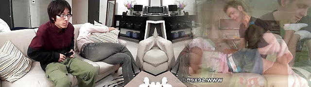 Beautiful Japanese woman places her sexy leg on the guys stiff pecker