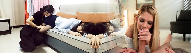Asian Latina Teen Step Daughter Rides Step Moms Face