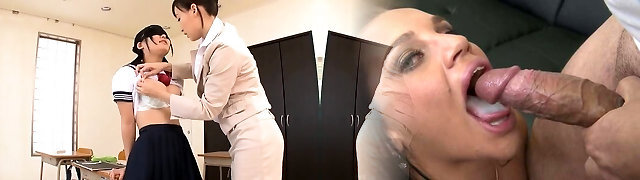 Lesbian lessons by a mature Japanese babe to her gf