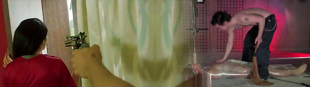 Burmese Super-cute Maid Girl cleaning and washing, but Her chief wants her ass