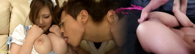 Japanese monstrous boobs maid fucked hard at work