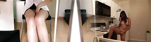 Unexperienced Massages her Boobs and Shows her Panties Upskirt
