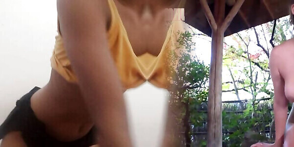 The stepfather invited the best friend to his garden, and they stripped naked under the stars.