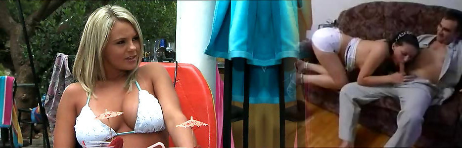 Marvelous blond wearing milky bathing suit Bree Olson gets romped by 2 guys