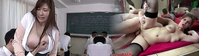 Chesty cram school teacher experiencing the delights of big cock on the bed