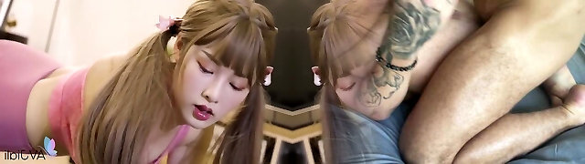 Brutal intercourse with blonde asian