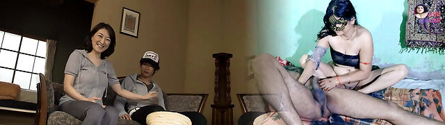 Young parcel delivery guy gets seduced by extremely super-naughty Japanese mature housewife