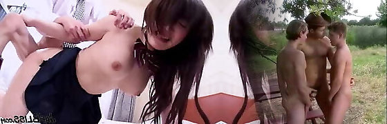 Three shy Asians get seduced by the insane men during dinner and have gang sex