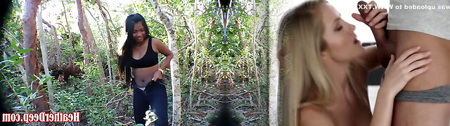 HD Heather Deep showcasing on highway then gives public deep-throat throatpie