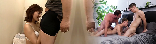 Obese Japanese mature opens her legs to be fucked by a younger man