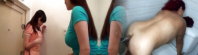 JAV - Mature lesbian abuses young woman in a shower