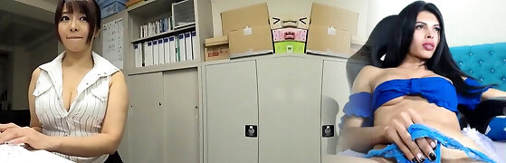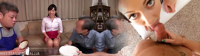 Rough day at work made more bearable by uber-handsome Trio way with Rina Mayuzumi - an astounding Asian xxx woman!
