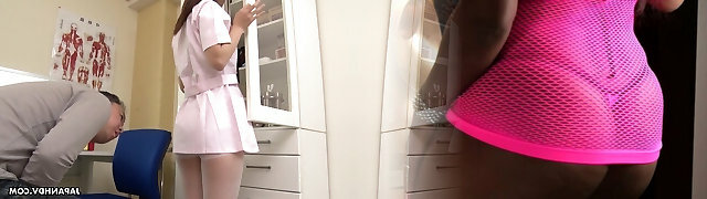 Naughty patient squeezes jiggly bum of Japanese nurse Anna Kimijima and gets BJ