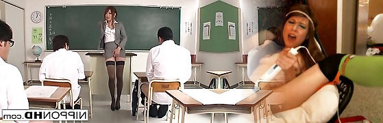 Chinese teacher masturbates and gives a blowjob in class