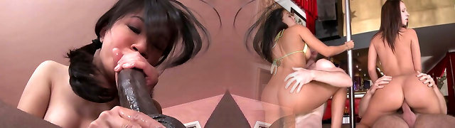 Asian hottie wraps her lips around a massive white boner then gets drilled