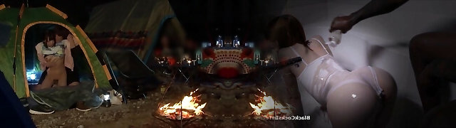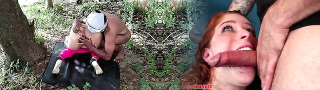 Romp couples have hookup in the park.