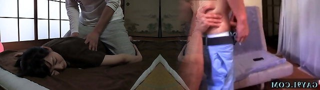 Two Older Guys Pound Hina Maeda Shaved Slit