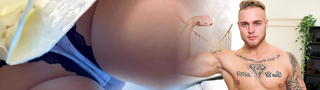 Unexperienced Massages her Boobs and Shows her Panties Upskirt
