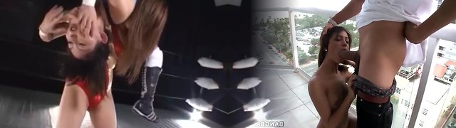 'Wrestling match with Chinese Mia dominating a guy at Evolved Fights'